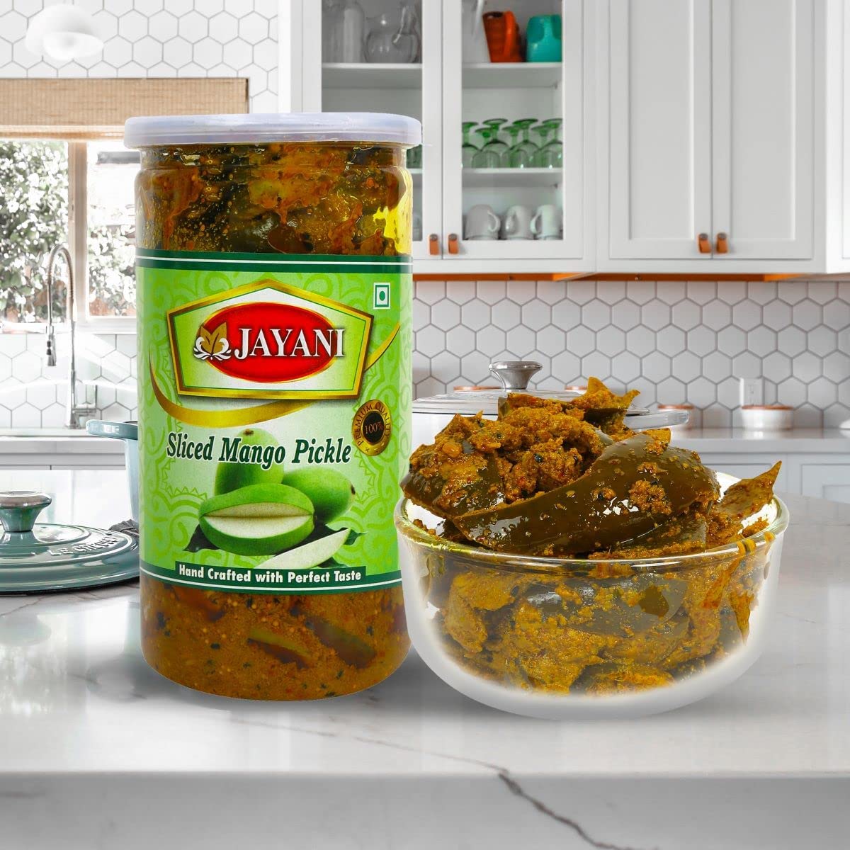 In Indian households, 99% of families use cut mango pickle to eat with food. It is 100% organic. It is found in every Indian kitchen. Pickle makes your lunch fun or dinner has an extra flavor in everything. In fact, in most households, food without these pickle dishes appears to be incomplete. You will find many types of pickle brands in the market. But not necessarily everyone can give you the taste of home, but if we talk about Jayani, then it gives you delicious homemade pickles only at very low prices. Jayani ensures that you get the only fresh and authentic product. We make all the products using only natural ingredients, and with lots of love; thats what makes jayani pickles & murabba so unique and different from others.