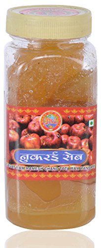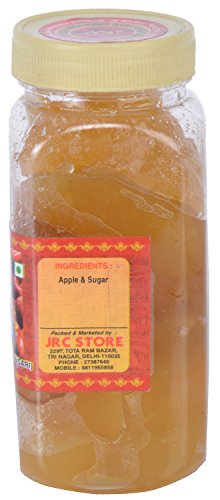 The product in display is a bottle of Apple Murabba weighing around 900 grams. Apple murabba provides vitality to your skin. It helps reducing wrinkles and blemishes. It is also a good antioxidant which fights off free radicals in the body and precludes skin aging. Apple murabba can also stimulate collagen production and maintains skin health. It has a shelf life of 12 months. The product contains no preservatives. Store in a cool and dry place. Natural Apple Murabba is tasty and can to eaten with bread roti rice and more. Kids and adults both enjoy eating it.