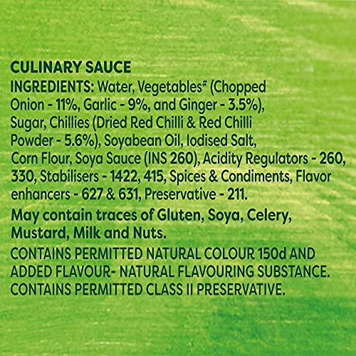 This one is definitely a winner when it comes to making the all popular Chinese dishes at home. Its remarkable flavour comes from the 100% real ingredients that have gone in making it. Its a perfect blend of onions garlic chillies and ginger delivering a sizzling taste to your palette. Kissan Schezwan Sauce is a multipurpose sauce that can be used as a dip gravy or stir fry sauce - an assured hero for all the Chinese snacks be it schezwan rice noodles spaghetti or just as a dip with your favourite snacks like samosa momos spring rolls bread sandwich bhel or nachos!