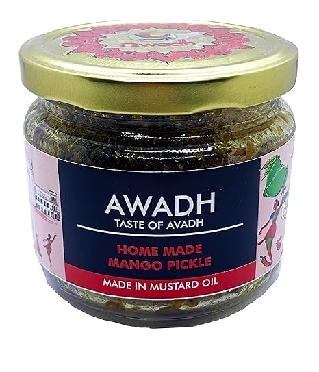 Mango Pickle 250g |U.P-Style Aam Ka Sukha Bharua Achar | LowOil & Low Salt | Tangy Spicy Sour and Salty | Dark Brown Mango Pickle | Long Sized Mango Pieces |Homemade Pickle |