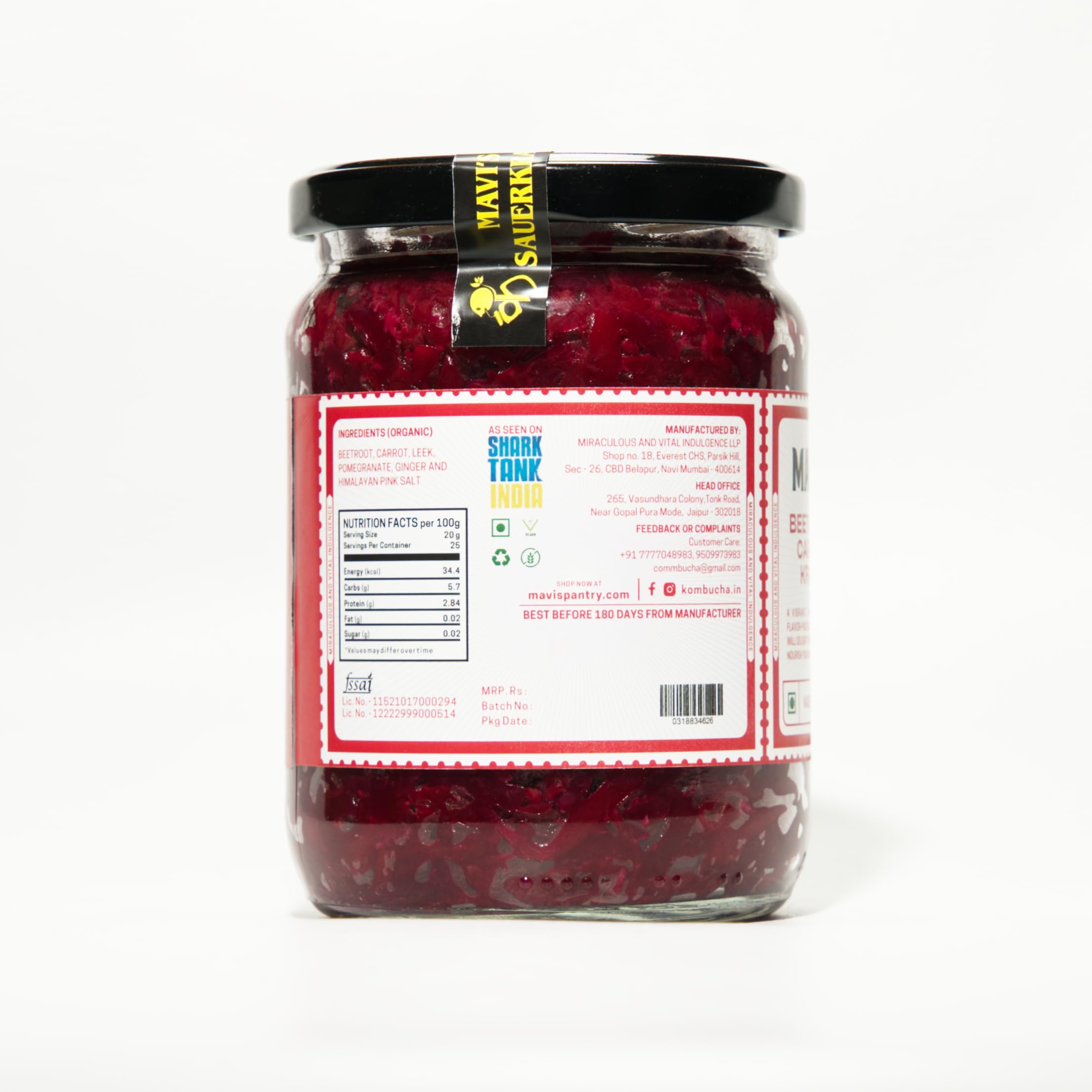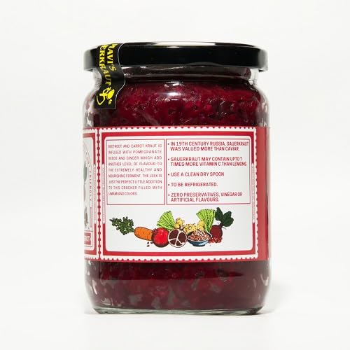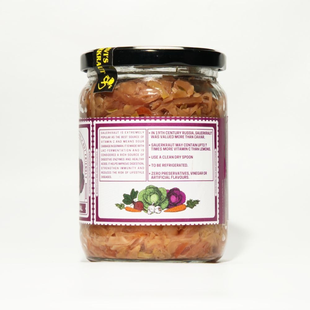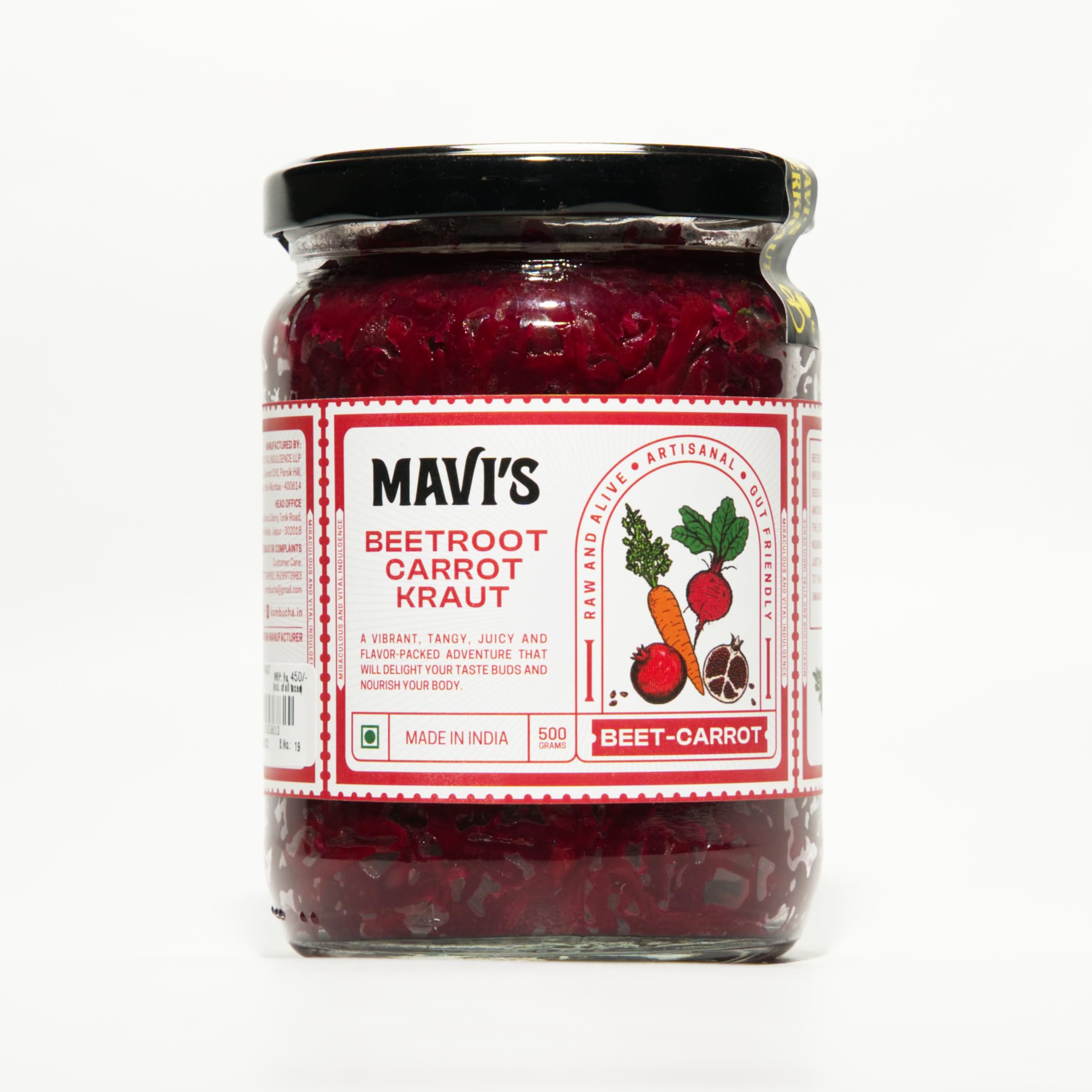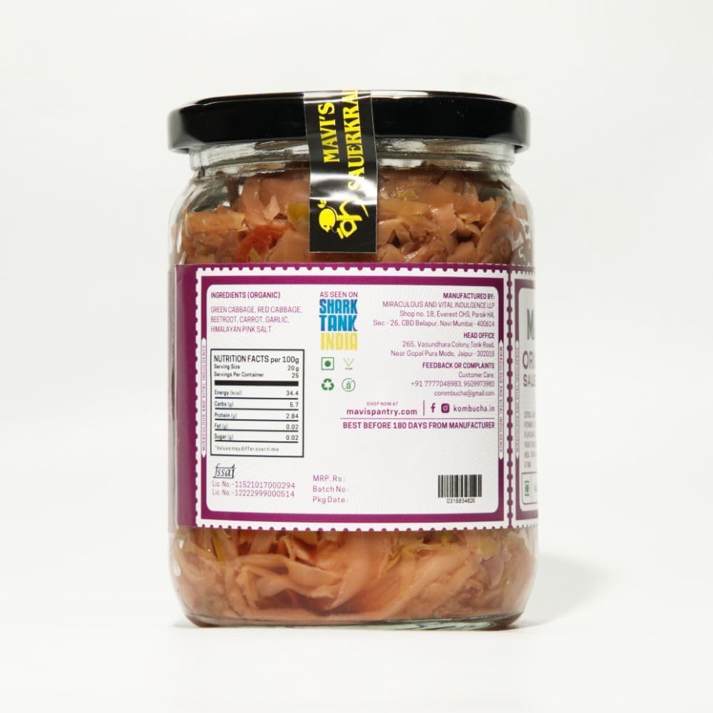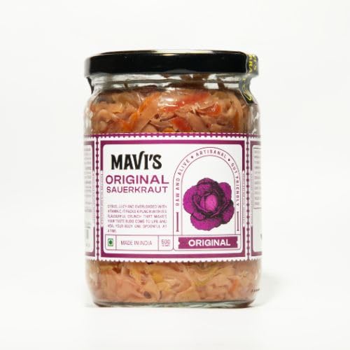 HomeGroceryFlavorsHomemade PicklesMAVI's Sauerkraut | Original Sauerkraut and Beetroot Carrot Kraut | Combo Pack of 2 | 500g each | 100% Natural & No Preservatives | Organic and Vegan | No Artificial Flavour or Colour