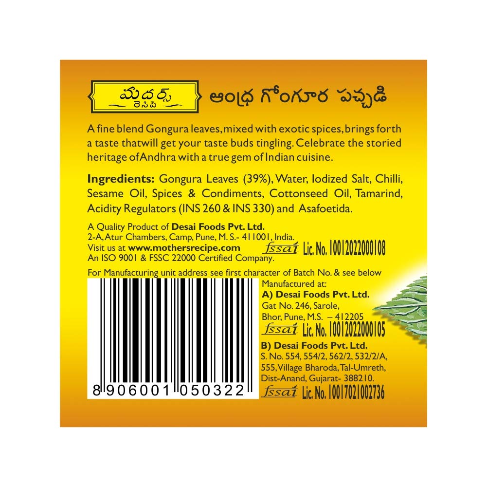 Mothers Recipe Andhra Gongura Pickle Bottle 300 g
