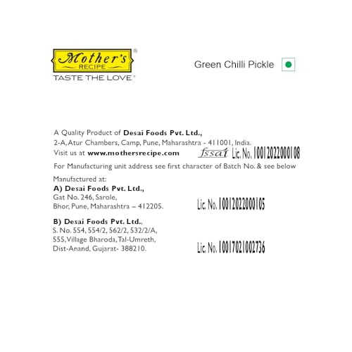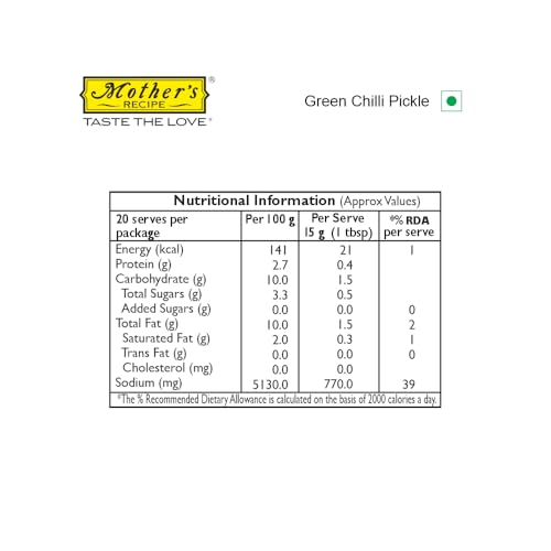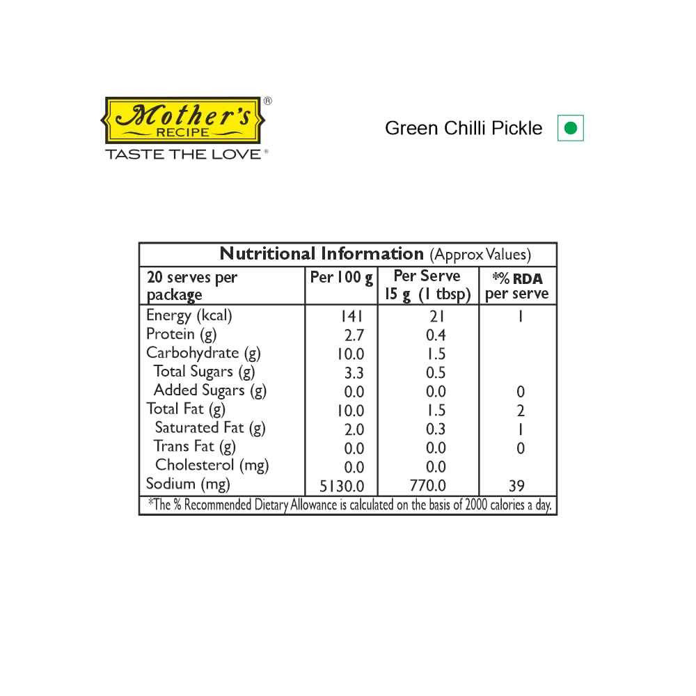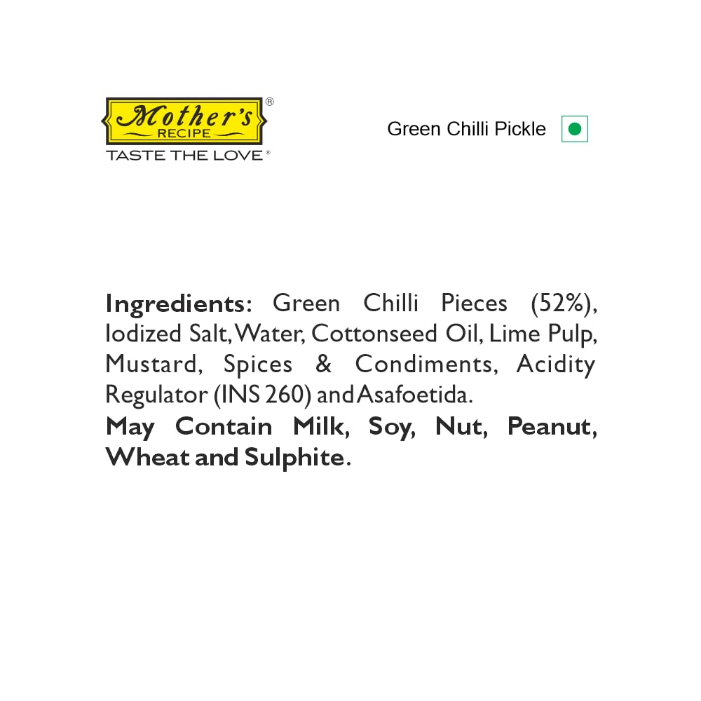 Mother's Recipe Green Chilli Pickle Bottle, 300 G