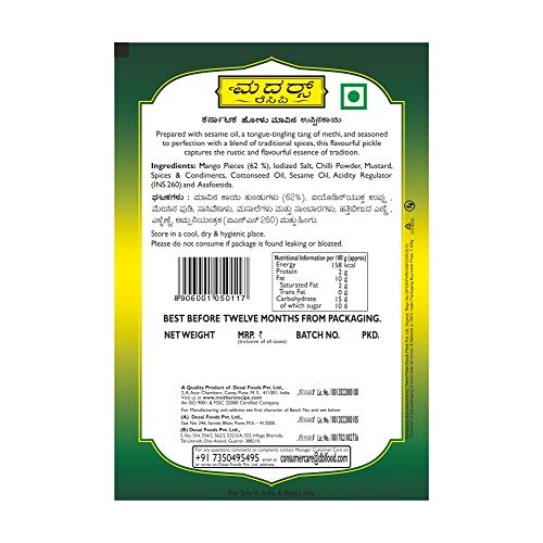 Mother's Recipe Karnataka Cut Mango Pickle Pouch,200 G