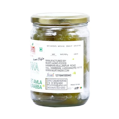 Savor the natural goodness of Amla Murabba a delightful treat that combines the tangy sweetness of Indian gooseberries with traditional flavors. Handcrafted using age-old recipes and premium quality Amla each bite offers a burst of fruity goodness and aromatic spices. Our Murabba is meticulously prepared to preserve the nutritional benefits of Amla rich in Vitamin C and antioxidants. Whether enjoyed as a standalone snack or paired with warm bread this delicacy adds a touch of indulgence to your daily routine. Dive into the wholesome taste of Amla Murabba and experience the perfect blend of health and flavor. Add a jar to your cart today and elevate your snacking experience with this exquisite delicacy.