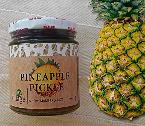 My Village Pineapple pickle is different. We using quality pineapples and ingredients without using any kind of preservatives or chemical additives. This spicy yellowish thick gravy pickle is so tasty. Product is less oily and normal salty. A wondrous touching with rice rotti biriyani bread poori ghee rice etc. Picked pineapple is always good for the digestive system.