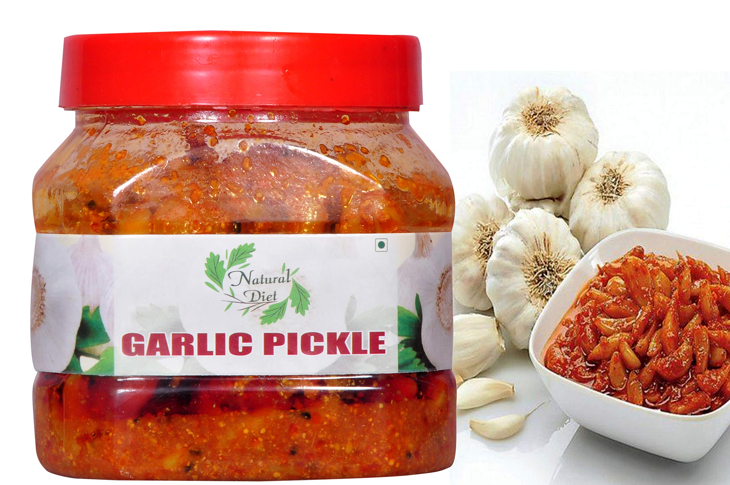 Natural Diet Organics Punjabi Punjabi Garlic Pickle with Full Pieces Lashun Ka Achar || Low Oil Pickle - 400 Grams || 100% Fresh Achar with Homemade Taste & Pure Natural Healthy Ingredients