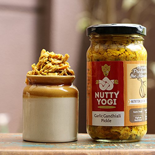 Nutty Yogi Garlic Gandhiali Pickle mildly spicy this works as a great taste enhancer.