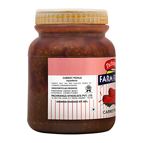 The Finest Flavour of Indian Tradition Since 1925. Original North Indian taste carrot pickle in edible oil. Real pieces of carrot. Excellent partner to Paranthas Roti Dal Chawal and so on! World famous Pachranga brand from Panipat.
