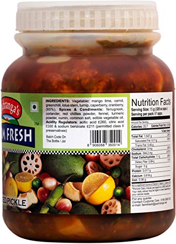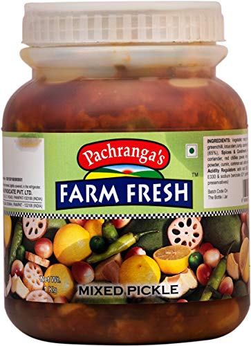The Finest Flavour of Indian Tradition Since 1925. Original North Indian taste mixed pickle in edible oil. Real pieces of Mango Lime Green Chillies Lotus Root Dela etc. Excellent partner to Paranthas Roti Dal Chawal and so on! World famous Pachranga brand from Panipat.