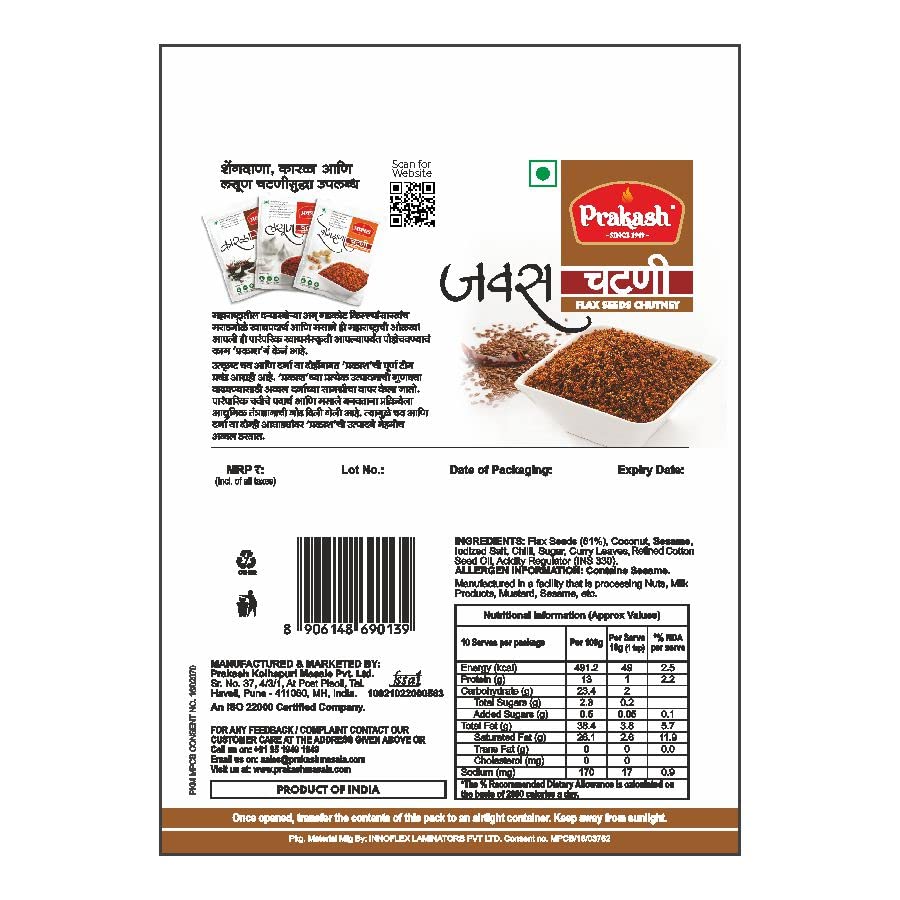 Made from niger seeds (Javas) this dry chutney brings with it not only a dash of assal Maharashtrian taste but also many nutritional and medicinal benefits. A piece of bhakri is all you need to enjoy it.