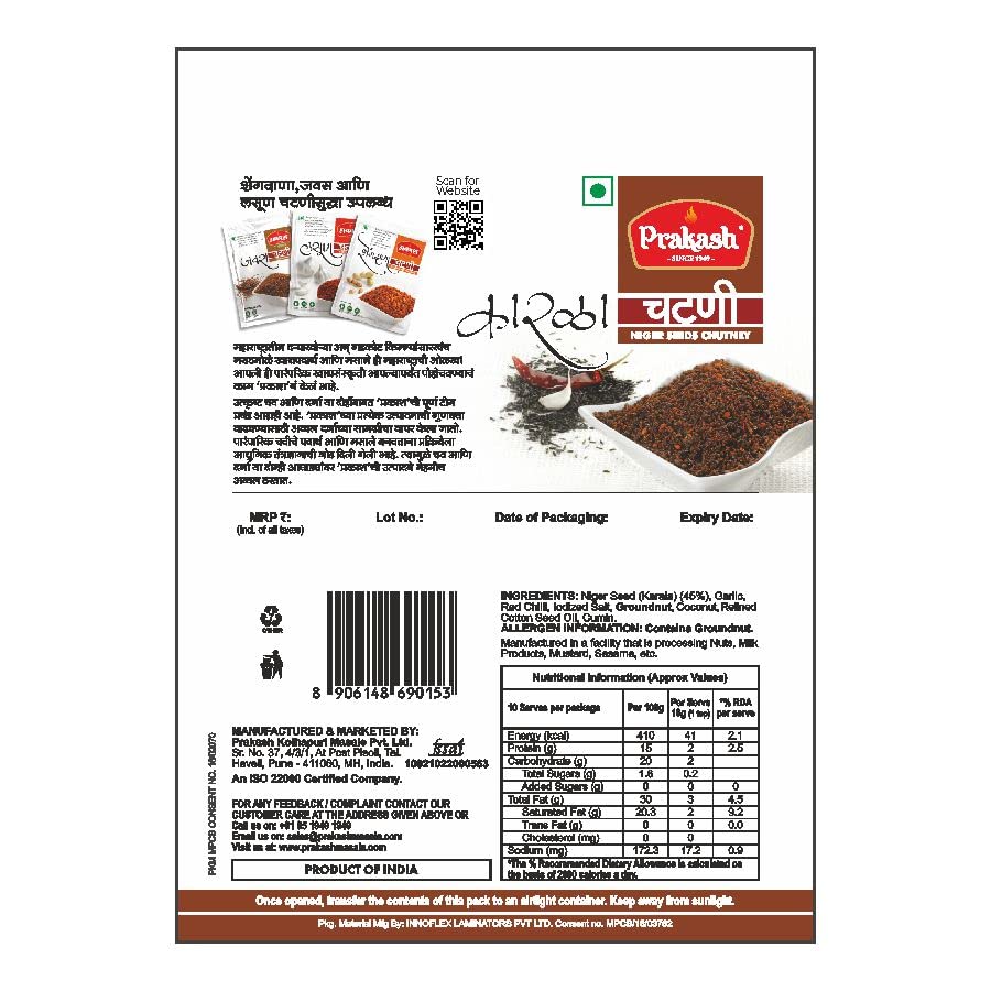 Made from niger seeds (karala) this dry chutney brings with it not only a dash of assal Maharashtrian taste but also many nutritional and medicinal benefits. A piece of bhakri is all you need to enjoy it.