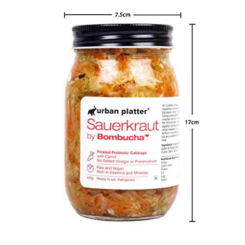 Urban Platter Sauerkraut Original Pickled Probiotic Cabbage with Carrot 450g