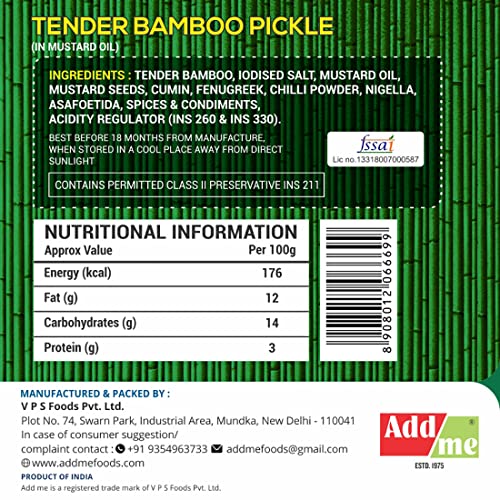 The pickle smells like kimchi gone bad. It has a sour smell and taste, and the spices are sticking out on the surface of very broad cut pieces of bamboo. I'm not used to finding a 6 cm by 3 cm blob on my plate for pickle, we typically have small diced or narrow cut vegetables and fruits in pickles. The bamboo was fibrous as opposed to tender, and the vinegar was overwhelming. It's a large bottle so it's going to be very hard to finish this.