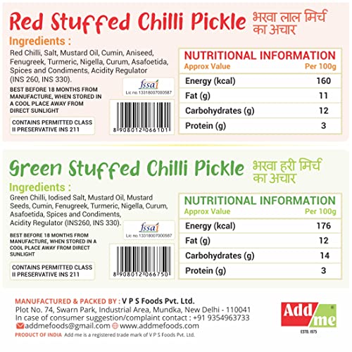 Red chili ??? pickle is better than green chilli pickle... different taste of masala filled in both the pickles. Although good in taste and mouth watering too??