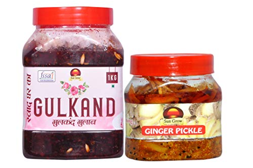 Sun Grow Food Home Made Organic Gulkand Gulab ||Traditional Marwadi Rajasthani Flavor, Tasty || (Meetha -Pan Flavour) - 1kg--&-- Homemade Ginger Pickle, Traditional Punjabi Flavor, Tasty & Spicy 500gm 500gm (To Serve From 2 States)