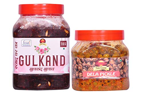 Sun Grow Food (Combo Pack Of 2) Home Made Organic Gulkand Gulab ||Traditional Marwadi Rajasthani Flavor, Tasty || (Meetha -Pan Flavour) - 1kg--&-- Mother Made Homemade Masalo Se Bana Chatpata Rajasthani Ker ka Achar Dela Pickle 500gm