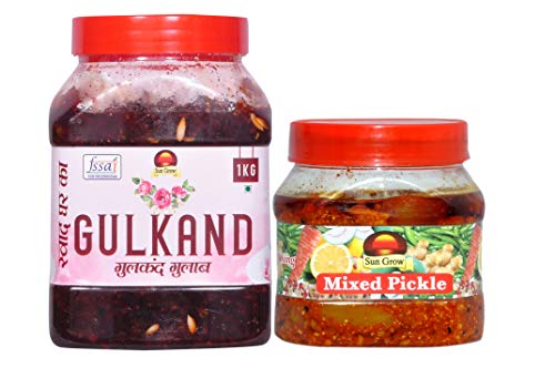 Sun Grow Food ( Combo Pack Of 2) Home Made Organic Gulkand Gulab ||Traditional Marwadi Rajasthani Flavor, Tasty || (Meetha -Pan Flavour) - 1kg --&-- Punjabi Homemade Flavour & Taste Pachranga Mix Vegetable Pickle 500gm--(To Serve From 2 States)