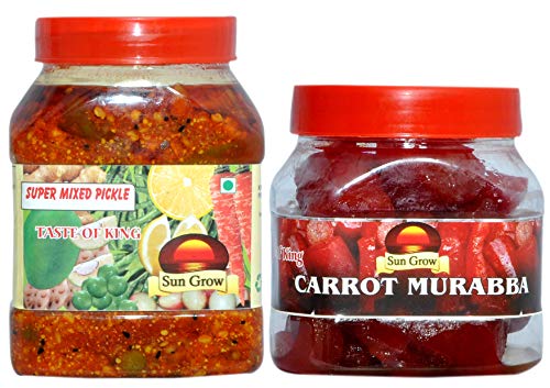 Sun Grow (Combo) Homemade Organic Super Mixed Pachrangha Pickle 1kg & Home Made ,Hand Made & Mother Made Herbal Organic Carrot Murabba Half Kg
