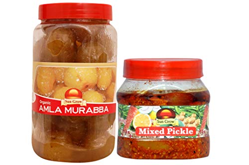 Sun Grow (comb Pack Of 2) Sun Grow Homemade Organic Amla Murabba (Immunity Booster Pack) Ingredient:, Fenugreek, Clove, Elam, Crystals, Cardamom (Elichie), Palm -1 Kg-&-Sun Grow Punjabi Pachranga Mix Pickle Home MadePuchranga Super Mixed Pickle Masaledar