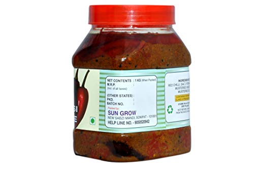 Sun Grow Organic Mother Made Stuffed Banarasi Red Chilli Pickle 850gram We Serve Natural You Eat Natural No Artificial Colors & Flavors