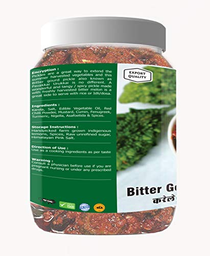 Agri Club Karela pickle in Less Oil. Carefully selected karela vegetable cut into pieces marinated in selected spices and very less virgin mustard oil. Its healthy & tasty like your home made karela sabzi. Cut pieces not whole karela pieces for your convenience. Shelf Life: Best before 12 months from packaging. A quality product from Agri Club It can be served with all Indian meals add to daals and curries and use it to spice up your Achaari Parantha! Enjoy the original taste of India. Definitely Vegetarian! No Artificial colors. No additives.
