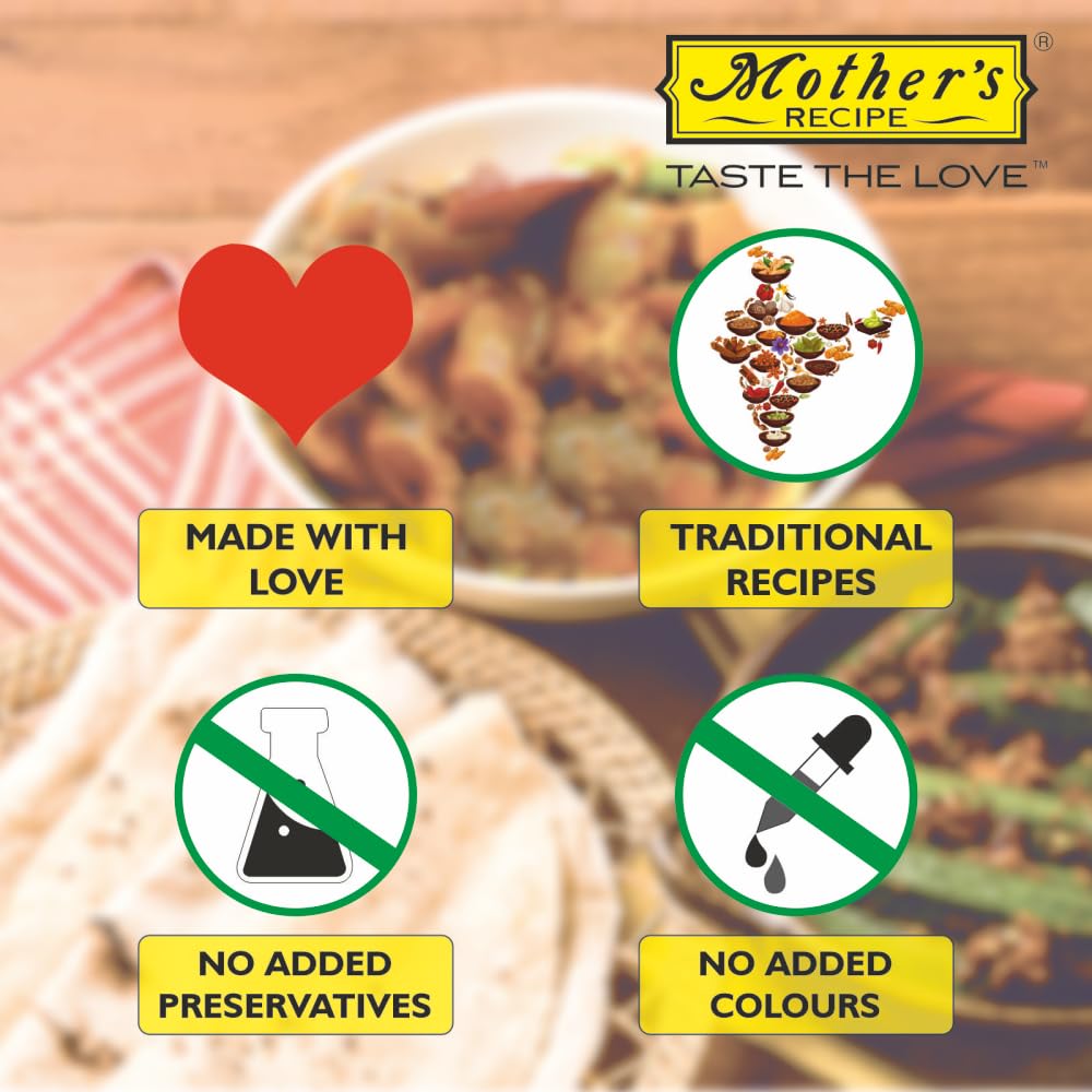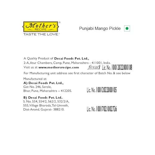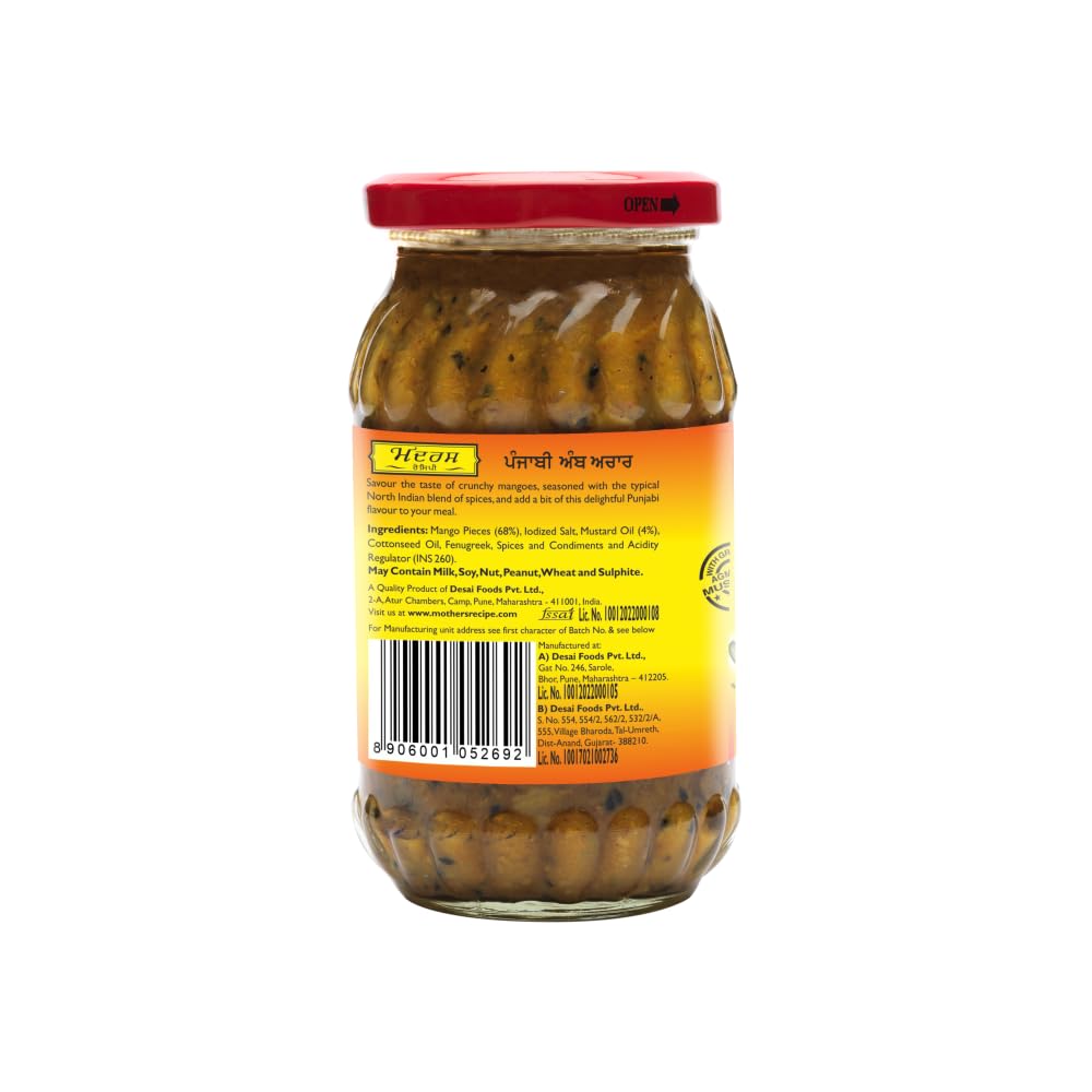 Mothers Recipe Pickle - Punjabi Mango is prepared in punjabi style. It prepared by using superiority of mango and extra ingredients. It has spicy taste. Mango dried under the sun and mixed with seasoning and transformed into this pleasurable Punjabi delight.