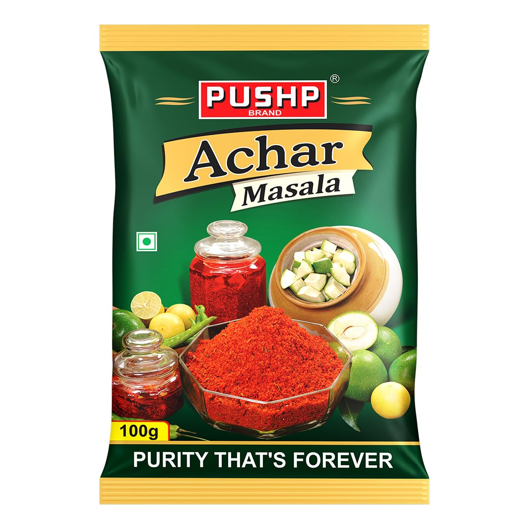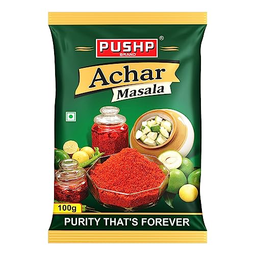 Pushp Achar Masala is a must-have for every Indian kitchen helping you make tasty homemade pickles that make your everyday meals more enjoyable. You can easily make different types of pickles like mango pickle mixed vegetable pickle lemon pickle and many more traditional favorites using this masala. Want to make delicious homemade pickles? Just grab Pushp Achar Masala and create wonderful pickles that your whole family will love! Check out other Pushp masalas too - Garam Masala Kitchen King Chaat Masala Pav Bhaji Masala and many more tasty spice mixes for your Indian cooking.