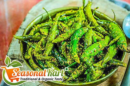 SEASONALKART Combo Pack of Homemade Green Athana Mirch Pickle and Red Athana Mirchi Pickles 400 gm Each Total 800 gm | Rajasthani Special Homemade Pickles Achar