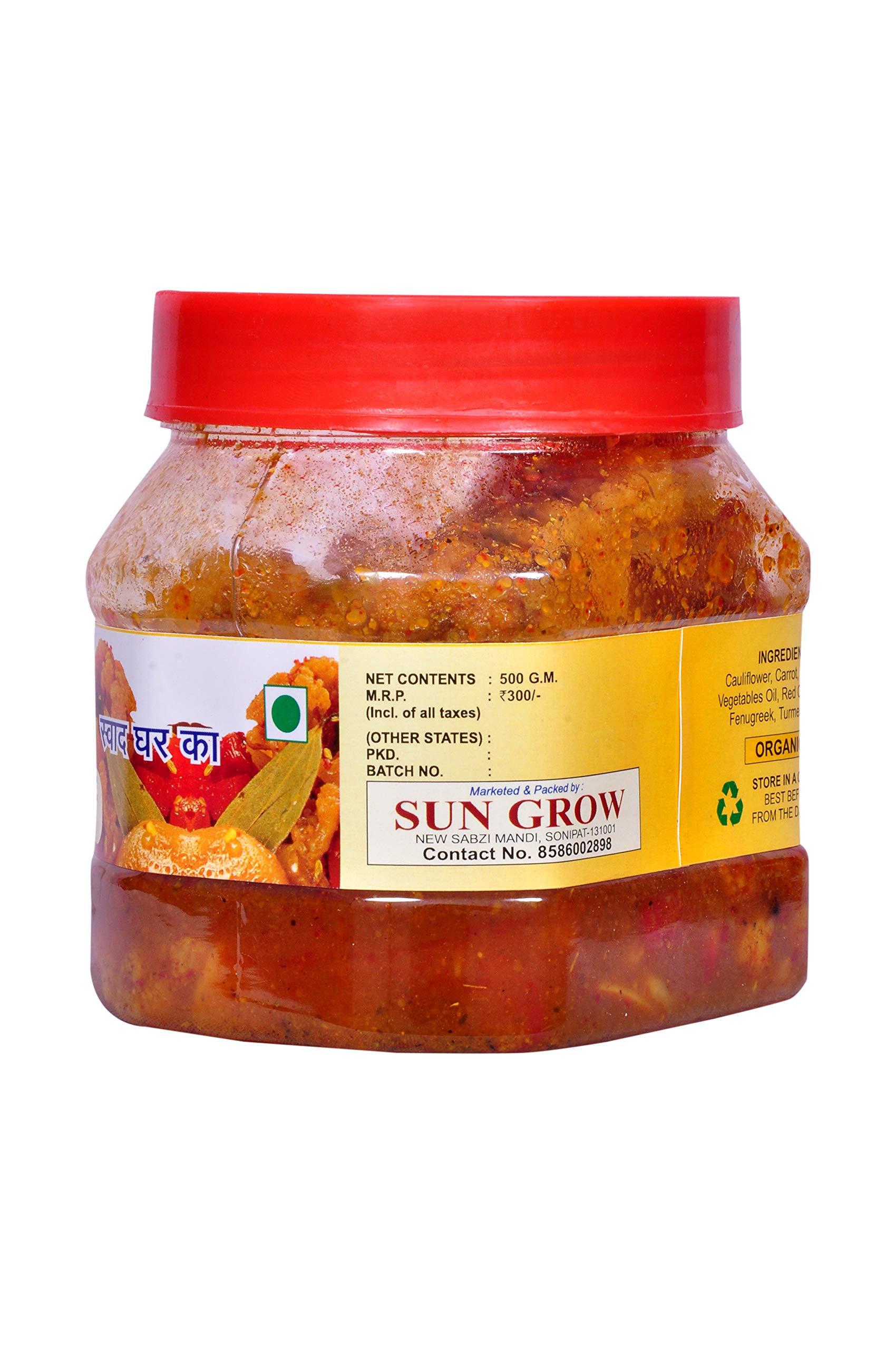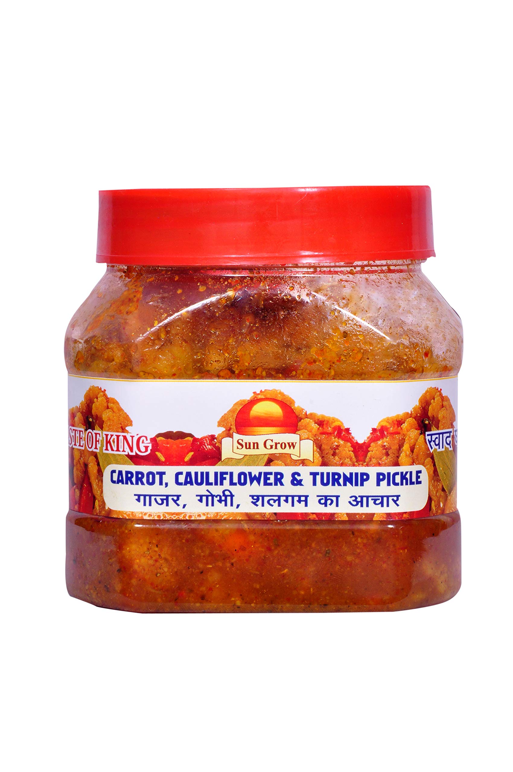 Sun Grow Organic Home Made Gobhi Gajar Shalgam Achar 500 gm Punjabi Sweet & Sour Mixed Pickle of Carrot, Turnip & Cauliflower