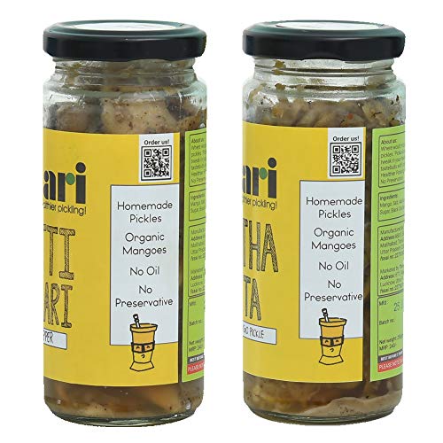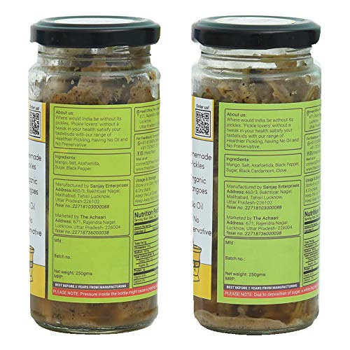 The Achaari Khatti Achaari Black Pepper & Meetha Raita, 100% No Oil & No Preservative, Homemade Mango Pickles, 500grams (Pack of 2)