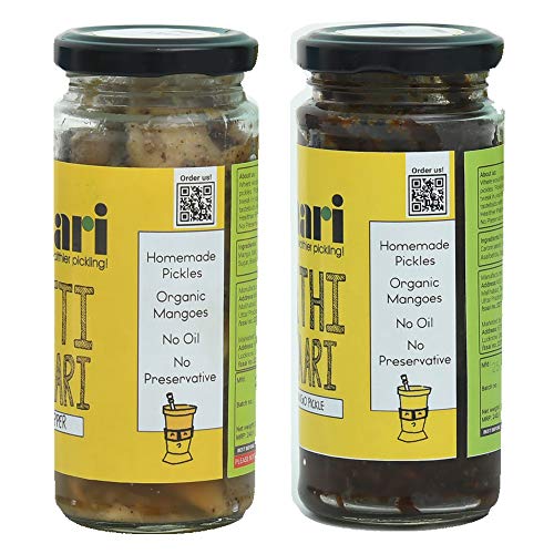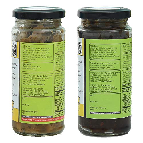 The Achaari Khatti Achaari Black Pepper & Meethi Achaari, 100% No Oil & No Preservative, Homemade Mango Pickles, 500grams (Pack of 2)