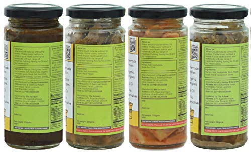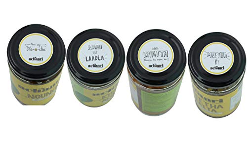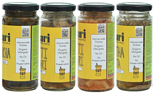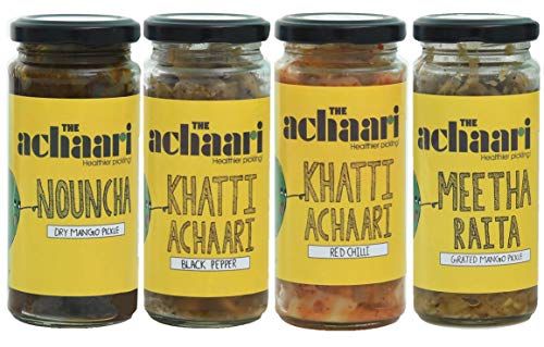 The Achaari Nouncha, Khatti Achaari Black Pepper, Khatti Achaari Red Chilli, Meetha Raita, 100% No Oil & No Preservative, Homemade Mango Pickles, 1000 Grams (Pack of 4)