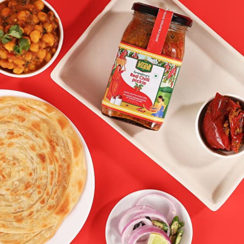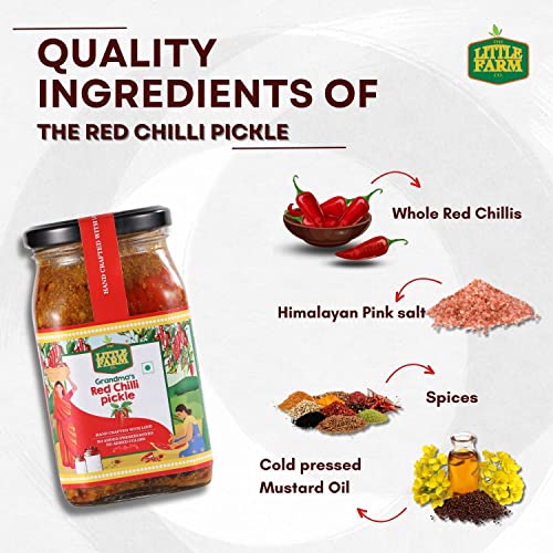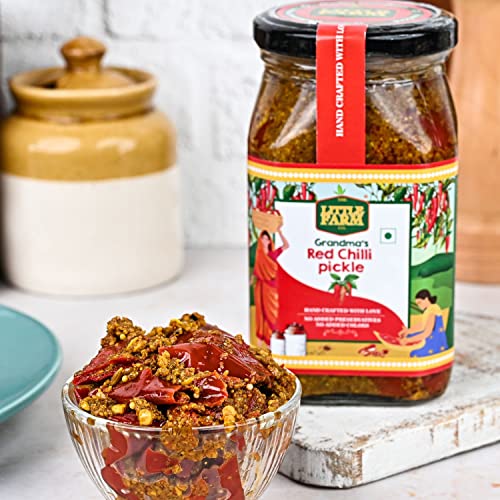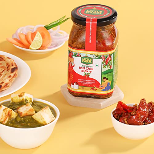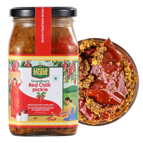 THE LITTLE FARM CO Banarasi Red Chilli Pickle - Lal Mirch ka Achar | Less Oil Mustard Base Homemade Stuffed Chilli Pickles | No Added Preservatives No Artificial Flavours | Traditional Recipe 400g