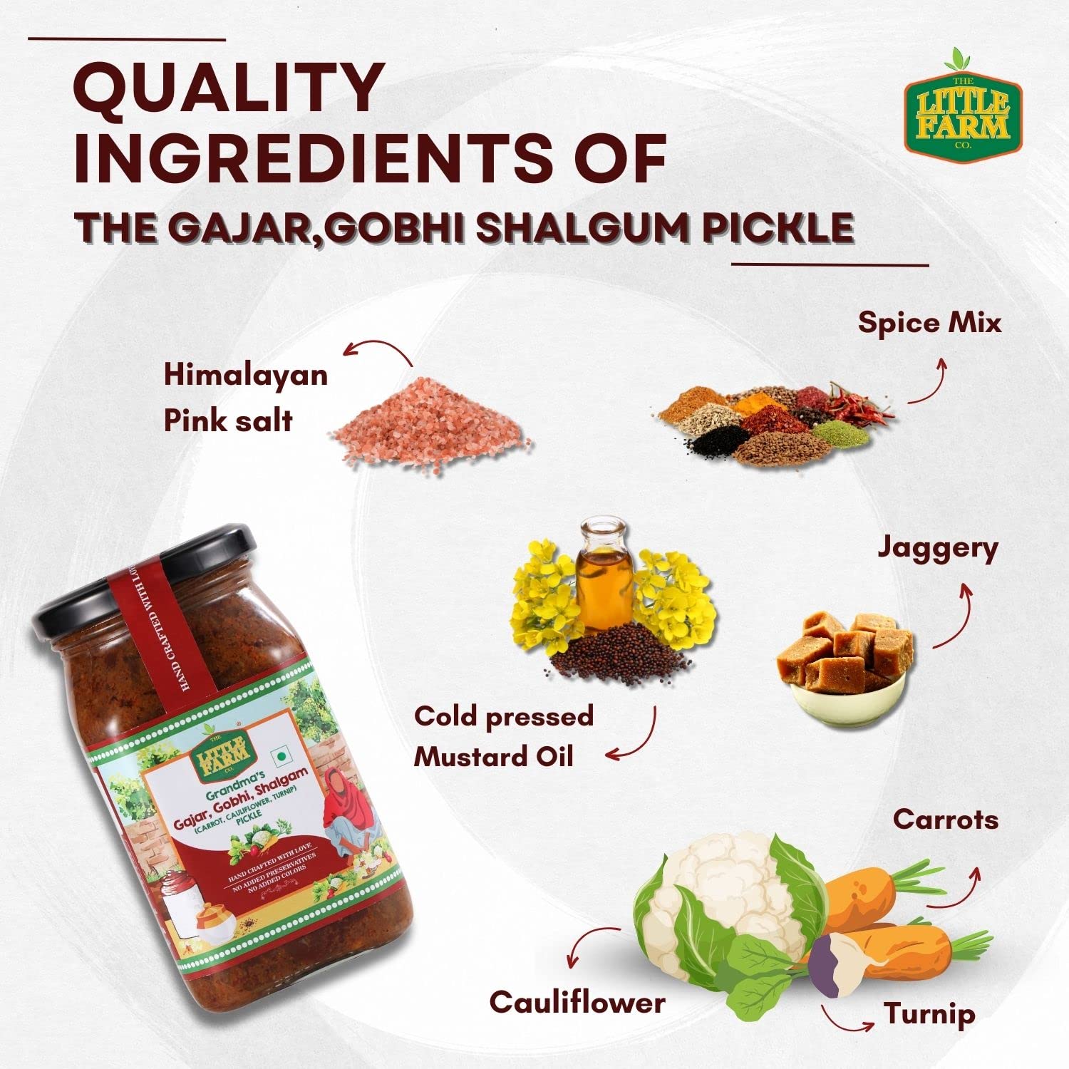 THE LITTLE FARM CO Punjabi Mixed Pickle - Gobhi Gajjar Shalgum ka Achar | Less Oil Mustard Base Homemade Mixed Pickles with Jaggery | No Added Preservatives & Flavours | Traditional Recipe 450g