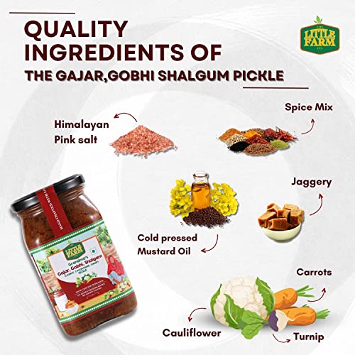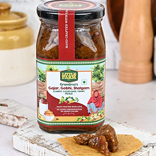 HomeGroceryFlavorsHomemade PicklesTHE LITTLE FARM CO Punjabi Mixed Pickle - Gobhi Gajjar Shalgum ka Achar | Less Oil Mustard Base Homemade Mixed Pickles with Jaggery | No Added Preservatives & Flavours | Traditional Recipe 450g