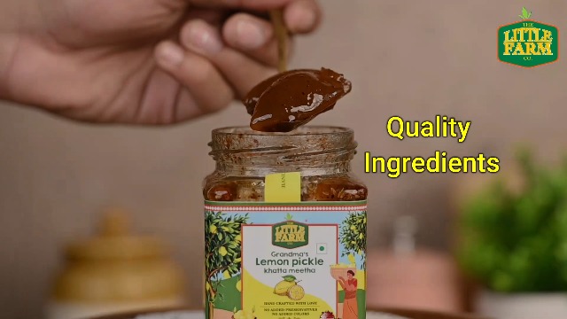 THE LITTLE FARM CO Sweet & Sour Lemon Pickle - Nimbu ka Achar | Oil Free | Homemade Khatta Meetha Nimbu Pickles | No Added Preservatives No Artificial Flavours | Traditional Recipe 450g