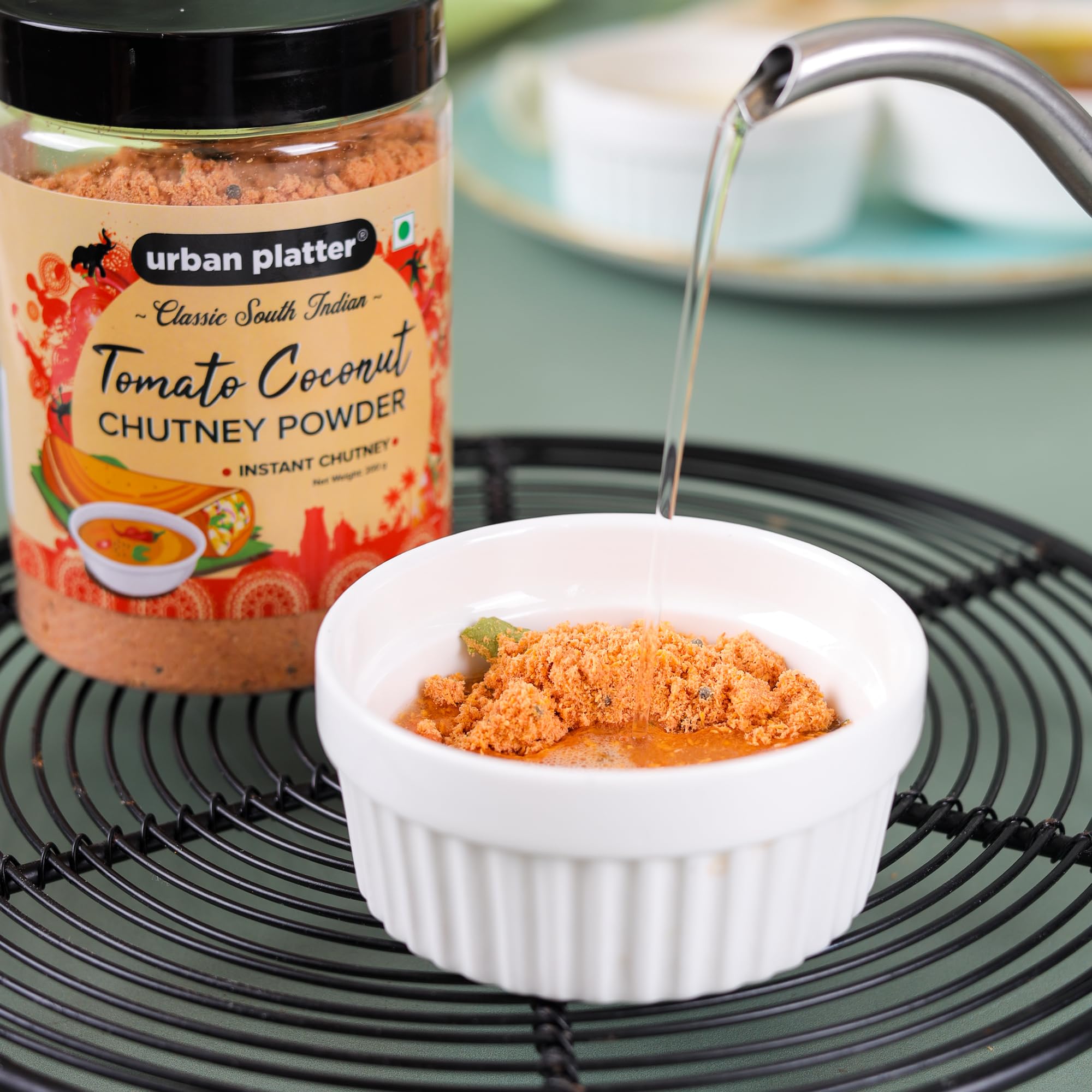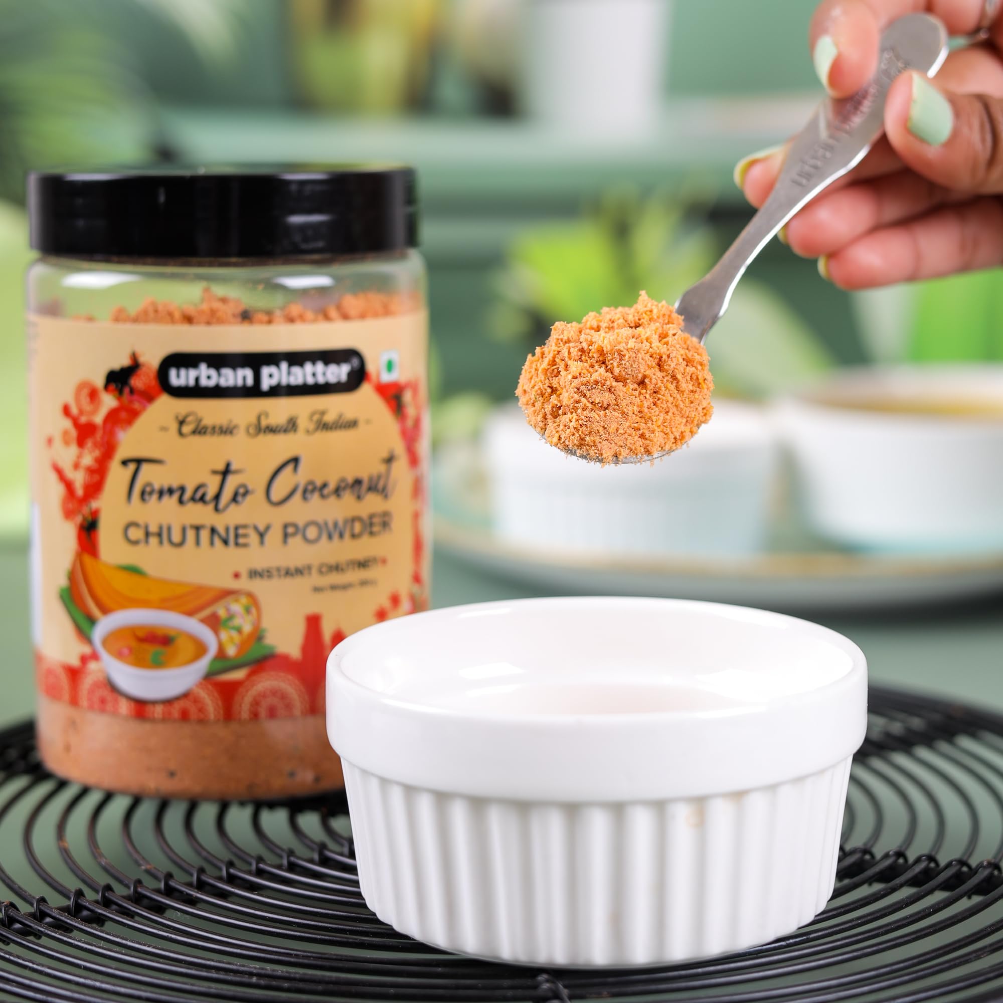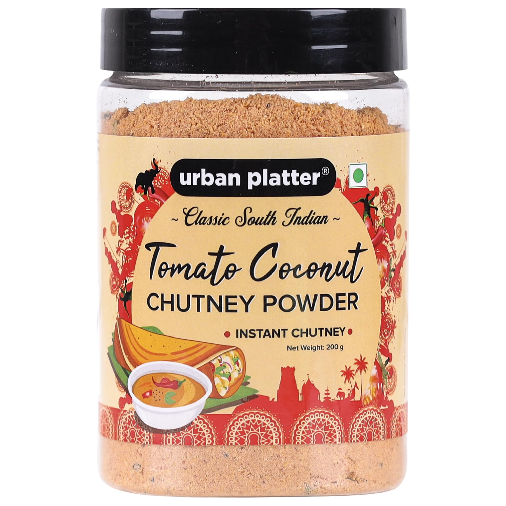 Urban Platter south Indian style instant tomato coconut chutney powder 200g/ 7oz [Nariyal ki chutney just add water] create instantly south Indian style tomato coconut chutney with our chutney powder. Most authentic taste and ready instantly. No artificial colours flavours or preservatives. No onion & garlic. Excellent side dish for idli dosa appam chapatti and roti varieties. Preparation - take 4Tsps of the chutney powder in a vessel. Add 50ml of water mix well and enjoy as a tasty side dish.