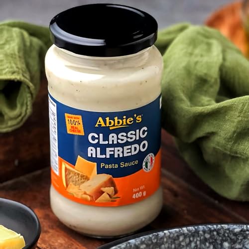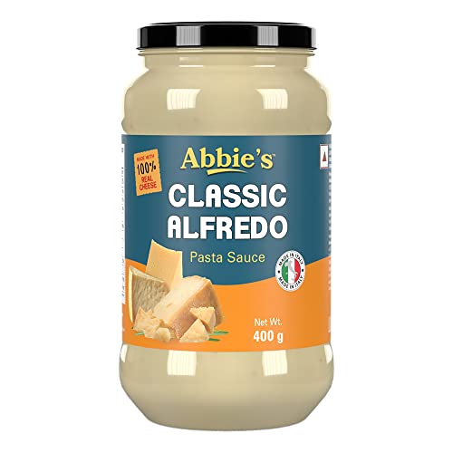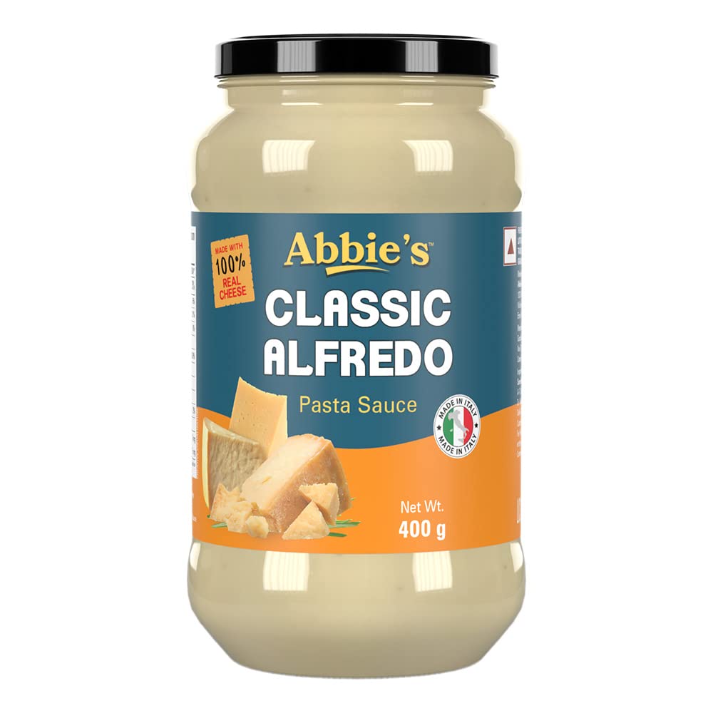 HomeGroceryFlavorsSauces & VinegarAbbie's Classic Alfredo Cheesy White Pasta Sauce 400 Gram, Traditional Italian Cheese Sauce, For Pasta And Pizza, Made With Real Cheese, Imported Pasta Sauce