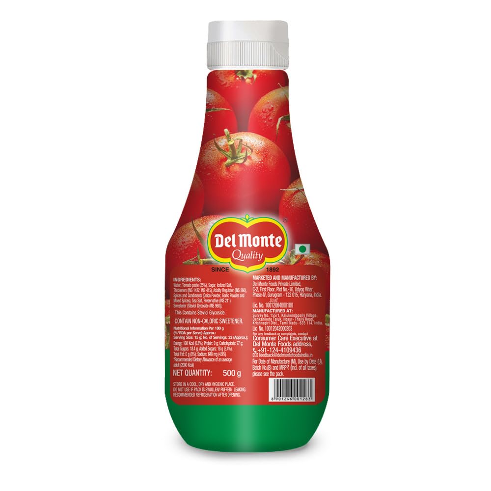 Del Monte Tomato Ketchup - Classic Blend 500g | No MSG |100% vegan | Top Quality |Made by Chef Loved by all