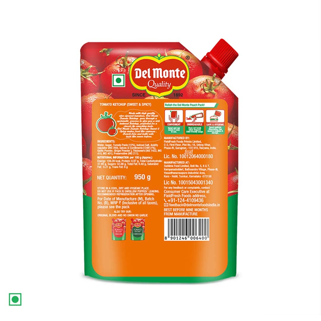 Del Monte Tomato Ketchup - Sweet and Spicy 900 grams | No MSG |100% vegan
