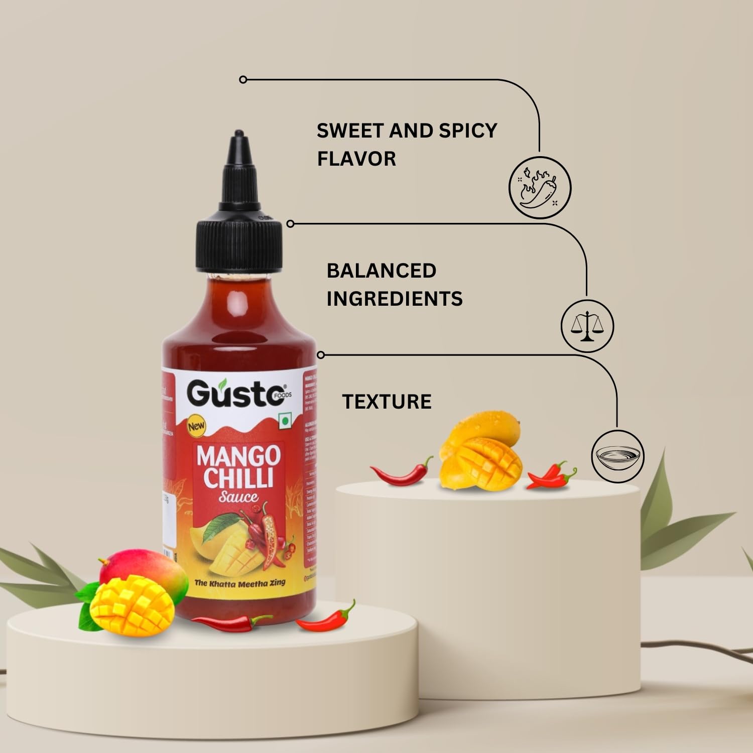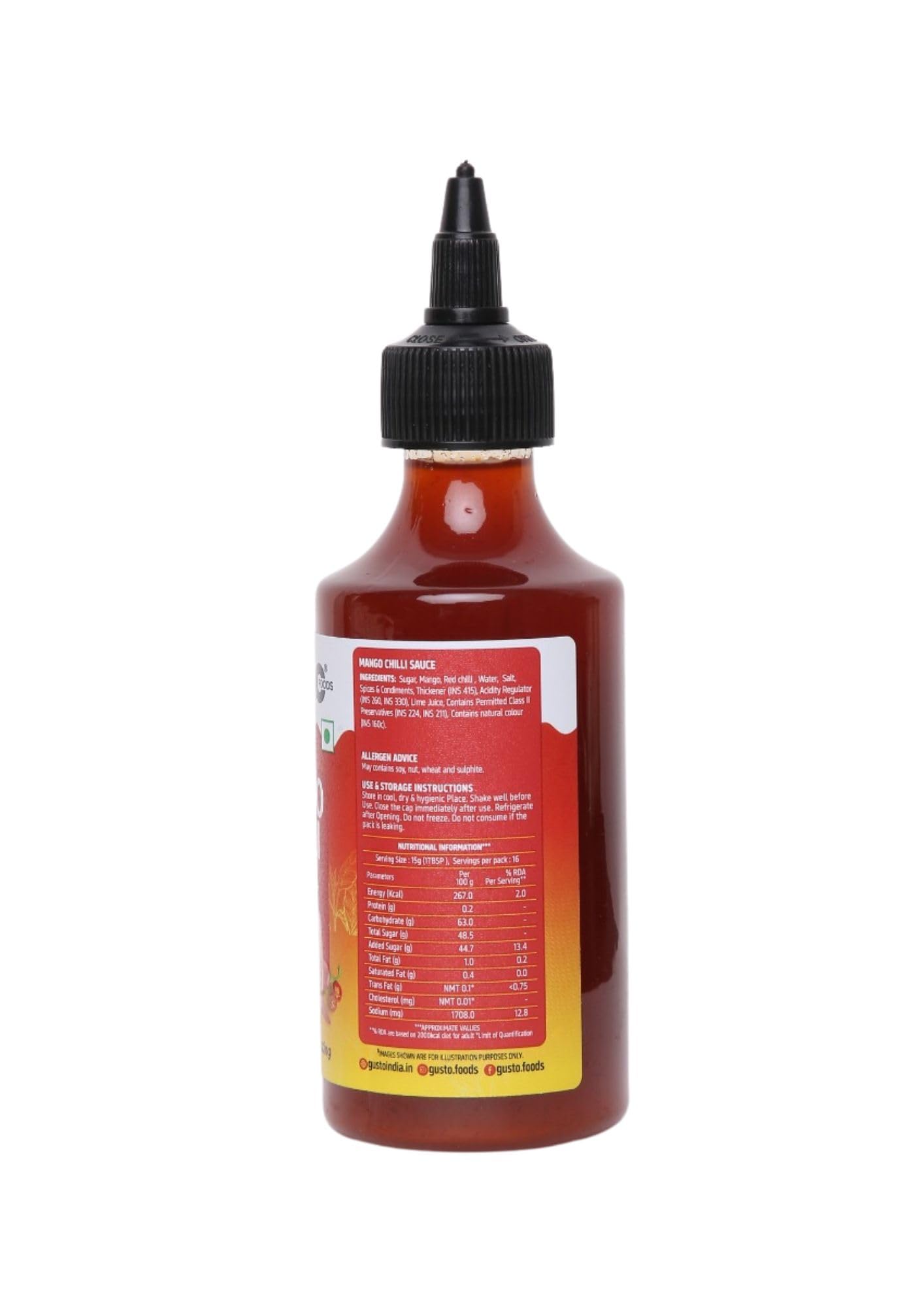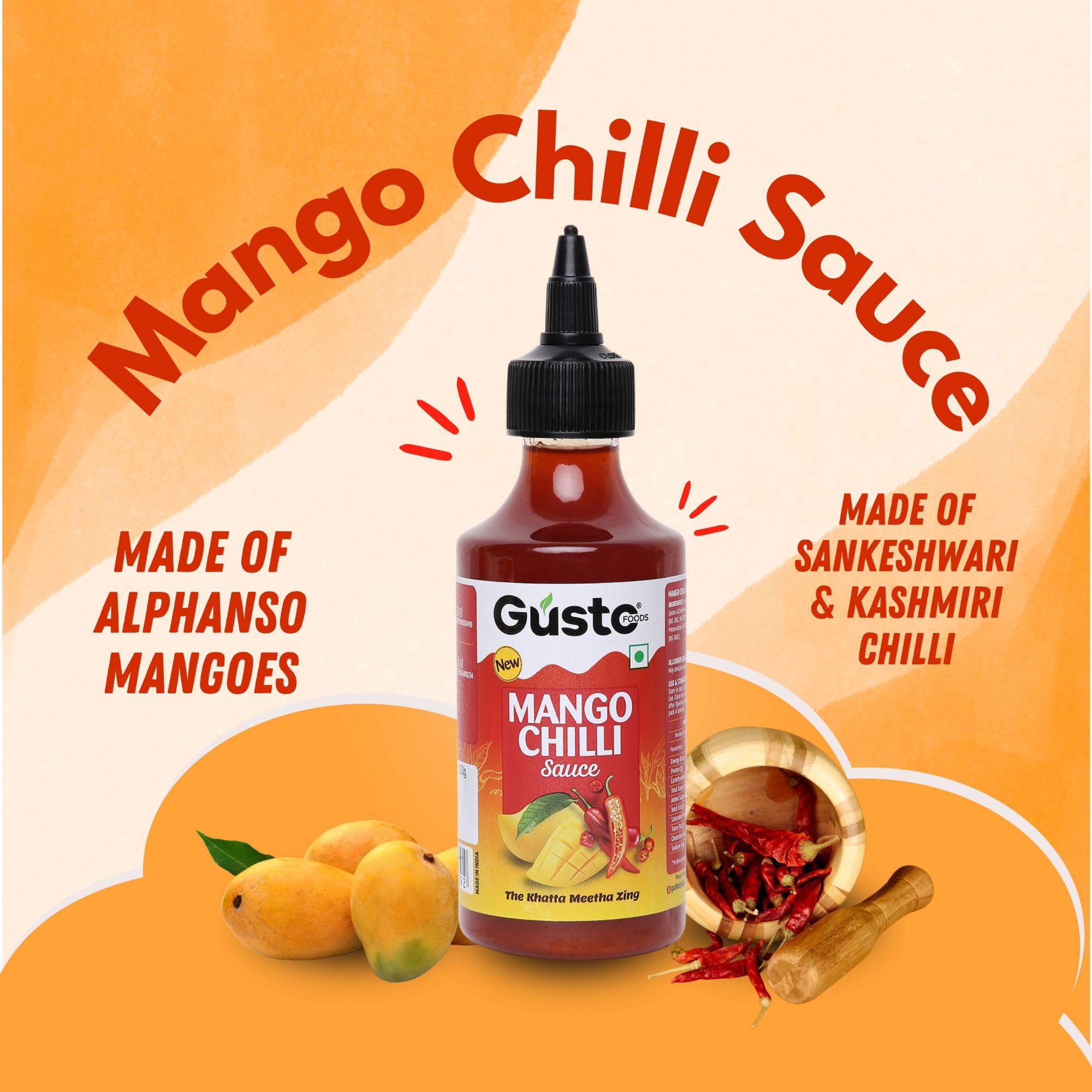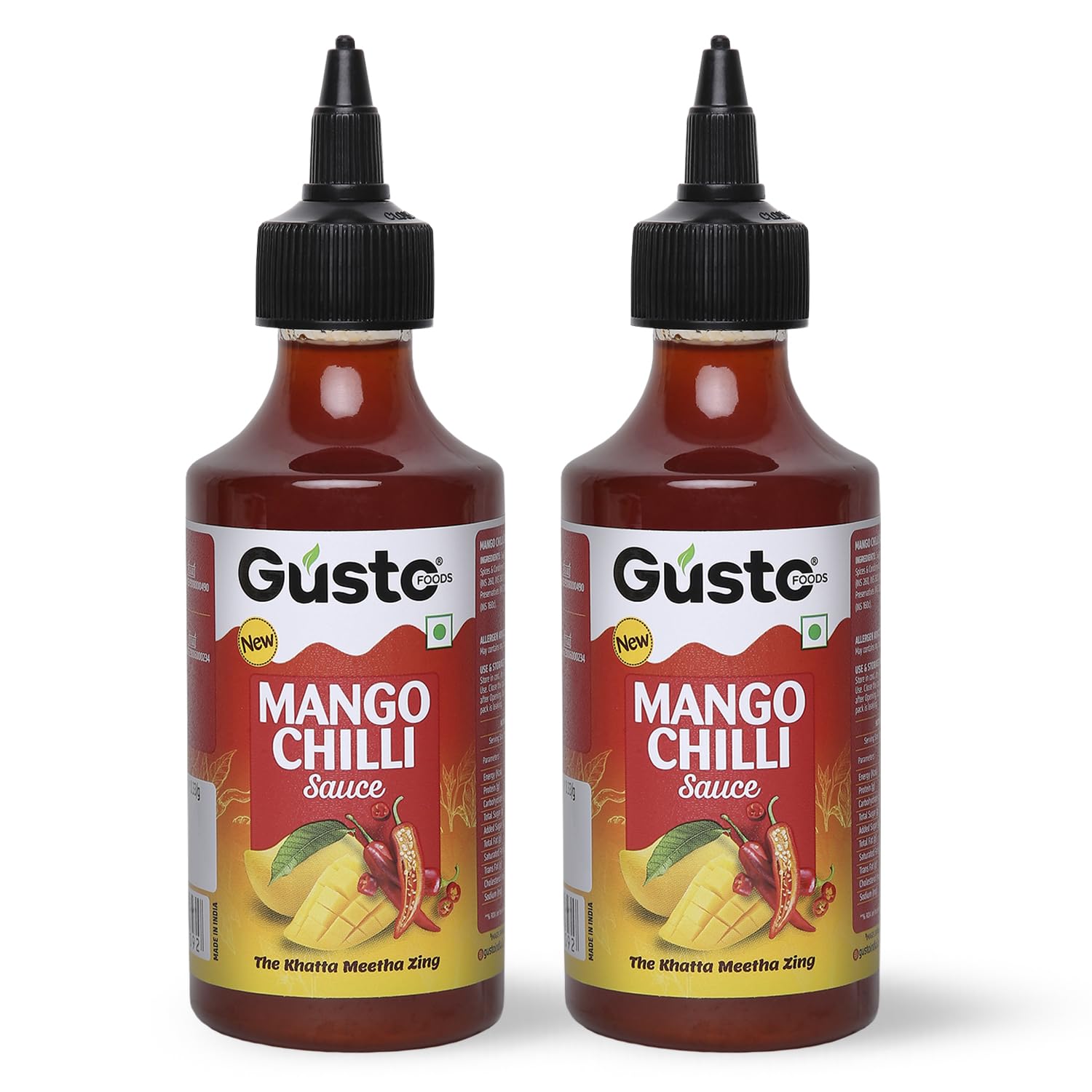 Gusto Foods Mango Chilli Sauce 480gm (Pack of 2) | Sweet and Sour Mango Sauce | Aam Chutney | Khatta Meetha Pickled Mango Sauce