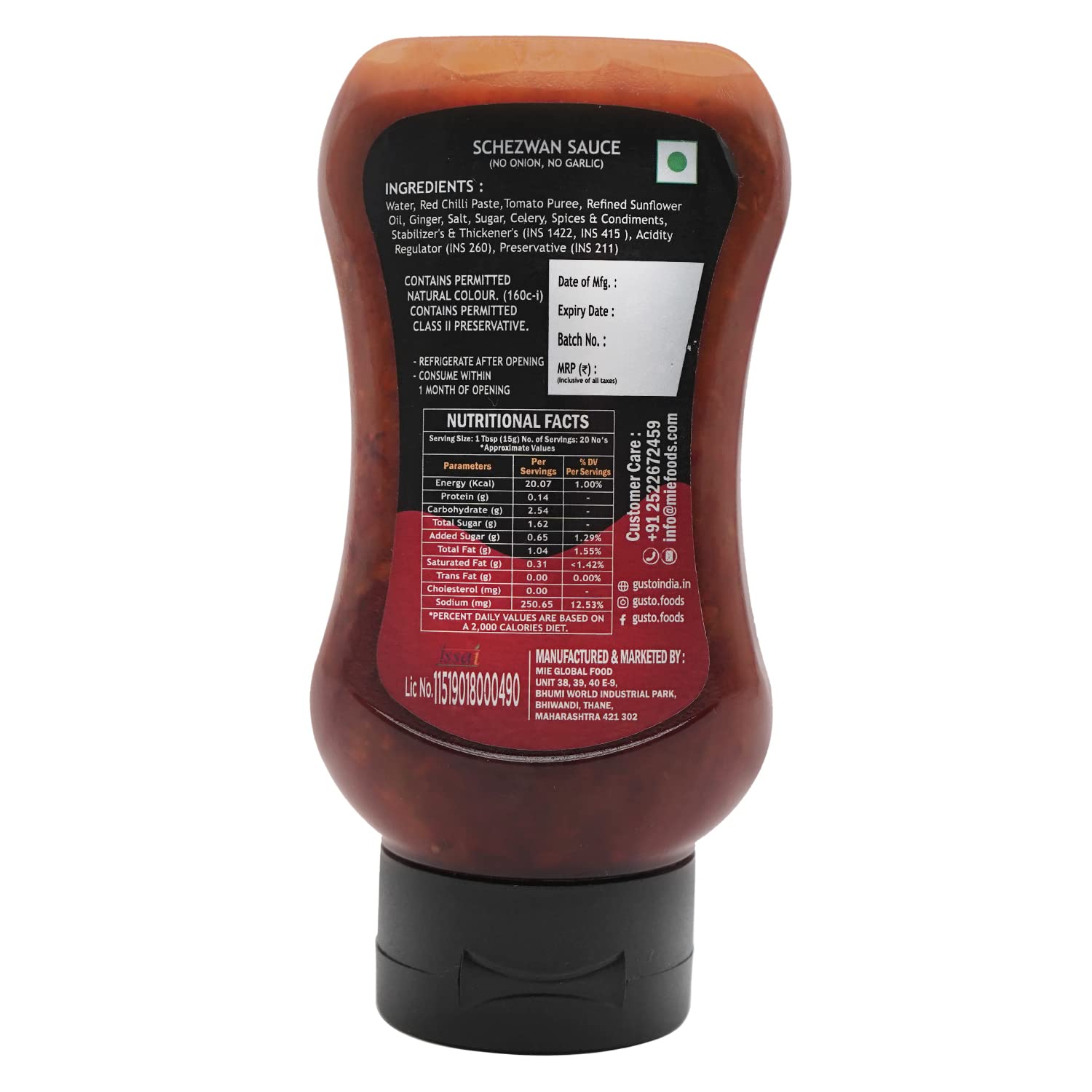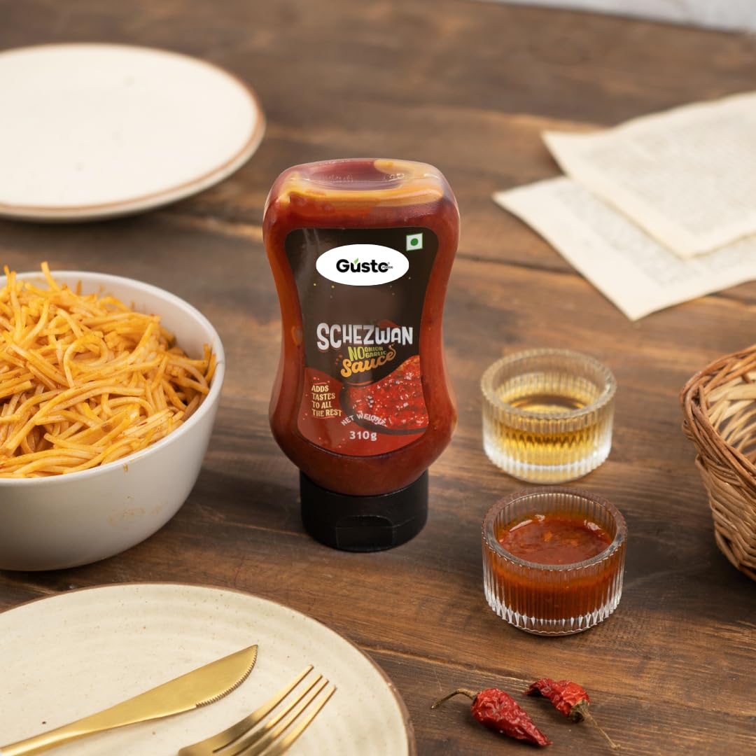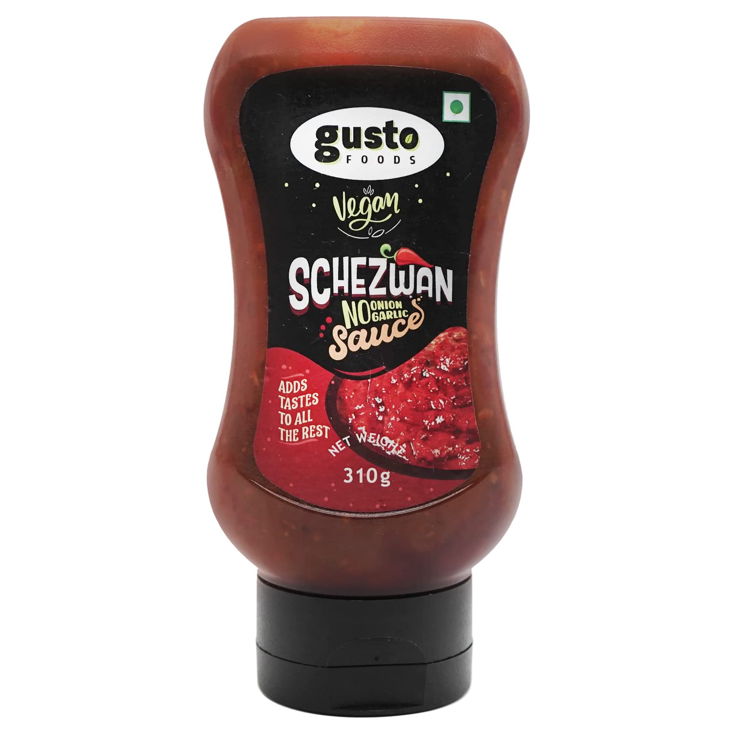 Gusto Foods No Garlic No Onion Schezwan Chunky Sauce (310 Gm) | Jain Chinese Schezwan Sauce | Made With Fresh Ingredients | Chinese Sauce | Ready To Use | Hot Spicy Chilli Schezwan Dip Sauce