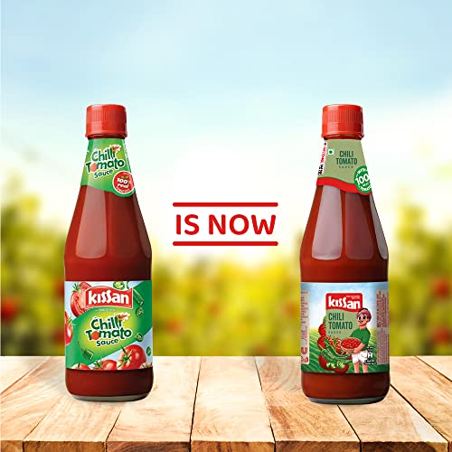 Say hello to a tangy tiffin meal! With each bite of a cheese sandwich paired with this ketchup it only keeps getting better. Prepared from fresh ripe and juicy tomatoes Kissan Chilli Tomato Ketchup is the best bet for a meal you cannot forget. This is made of tomatoes infused with green chilli that gives a nice spicy after taste. It makes any food as interesting as it gives a âtwistâ of spiciness just like fast food outside. Pair it up with a roll noodles or samosa to give you fast food ka twist. Relish the taste of tomatoes and green chillies in your meal to add a spicy twist with Kissan Chilli Tomato Ketchup!! Started in 1934 Kissan is a popular brand in India. Kissan is more than just jams ketchups sauces and squashes. Itâs all about kids eating happily & growing up happily. Kissanâs tasty and natural goodness keeps both mothers & kids happy. The brandâs reassurance to mothers is that they can make tiffin times fun yet wholesome with the Kissan range of products that are made with 100% natural ingredients! The tangy red burst of tomatoes in ketchup will give you the sensorial delight of natureâs goodness. Kissan Chilli Tomato Ketchup is made from 100% real tomatoes.