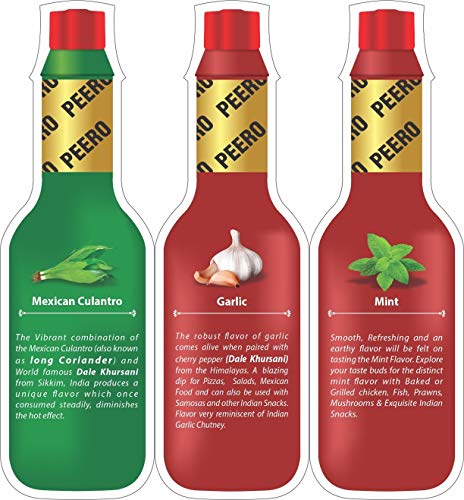 Mexican CulantroThe Vibrant combination of the Mexican Culantro (also commonly know as Long Coriander) and World famous Dale Khursani from Sikkim, India produces a unique flavors which once consumed steadily diminishes the hot effect.GarlicThe robust flavour of garlic comes alive when paired with cherry pepper( Dale Khursani) from the Himalayas, This is a biting hot sauce and a must have with Pizzas, Dressing , Salads. Also can be used with Indian Samosas, Kachori and Starters. flavour very reminiscent of Indian Garclic Chutney.