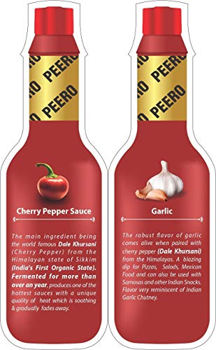 Red Cherry Pepper SauceThe main ingredient being the world famous Dale Khursani (Cherry Pepper) from the Himalayan state of Sikkim(India's First Organic State). Fermented for more then over a year produces one of the hottest sauces with an unique quality of the heat gradually soothing & fading away.GarlicThe robust flavour of garlic comes alive when paired with cherry pepper( Dale Khursani) from the Himalayas, This is a biting hot sauce and a must have with Pizzas, Dressing , Salads. Also can be used with Indian Samosas, Kachori and Starters. flavour very reminiscent of Indian Garclic Chutney.