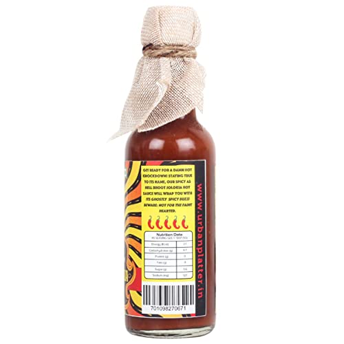 Bhoot Jolokia Hot Sauce 200g / 7oz [Extra Spicy Ghost Pepper Sauce]Spice Level - 5 / 5.Warning: Proceed with extreme care. Stay away from . The fabulous Bhoot Jolokia one of the hottest chillies in the world. Try a little bit of this pungent Ketchup to savour its smoky smoothness and raw heat. Its intense pungency and heat make it excellent for a Hot Sauce Challenge!Warning: Use extreme caution when trying this smoky fire-loaded hot sauce. Keep a glass of milk within easy reach just in case!Enjoy the afterburn!