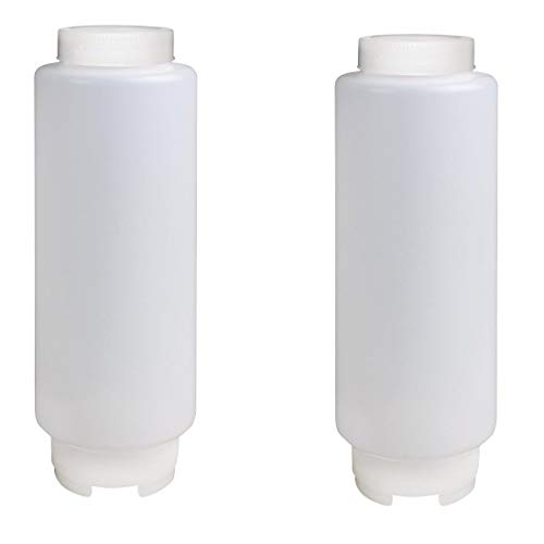 Wide mouth openings on both ends provide for sanitary food rotation fast and easy refills and easy cleaning. Do you break the tips off of our current squeeze bottle when you try to get the product to the "top"? Do you feel like you end up throwing away product because it ends up sticking to the walls of the bottle? These are common situations to find yourself in and we have the solution. The FIFO bottle. By taking advantage of gravity these first in first out (FIFO) bottles help minimize sauce waste. This revolutionary concept helps ensure that the product is always ready to dispense. The FIFO bottle is filled from the top and dispenses from a non-drip silicone valve through the bottom. These bottles are durable and easily washable. FIFO bottles ship to you with a multipurpose dispensing valve and a white label cap