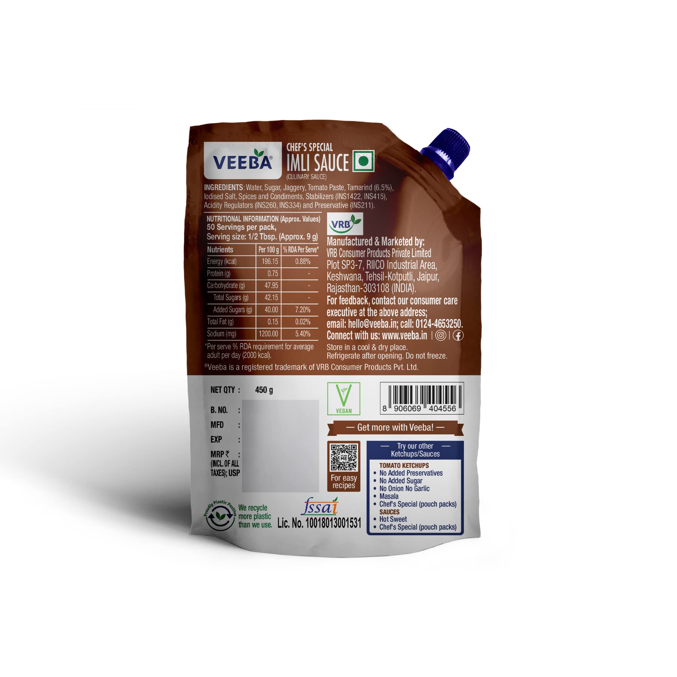 Veeba Chef's Special Imli Sauce has the distinctive notes of tamarind and jaggery blended with tomatoes sugar and traditional Indian spices.