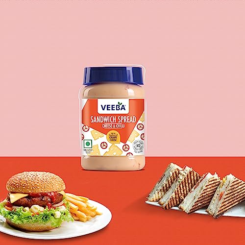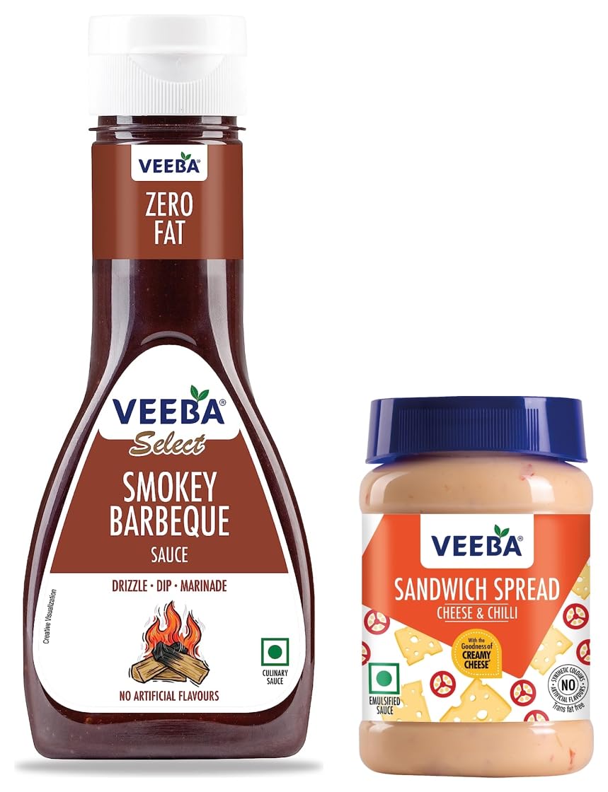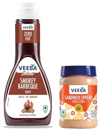 Veeba Sauces Barbeque Sauce 330gAll our sauces and dressings have exceptionally low fat content at the same time retaining that perfect balance of taste and flavour. Not just that to ensure unmatched quality all Veeba sauces are manufactured in an iso 22000 certified plant. Customer convenience is the top priority here at Veeba thus all Veeba sauces and dressings come in specially designed ergonomical bottles with an easy to apply dispensing system. For the first time in India such a wide range of tasty and healthy sauces and dressings has been introduced. Using our considerable experience in the food processing industry we have tried to translate our understanding of the changing tastes of the young Indian households into finest products possible. You can now make your favourite sandwich salad or snack in the comfort of your home.Veeba Cheese and Chilli Sandwich Spread 250g100 percent veg great for sandwiches and rolls.